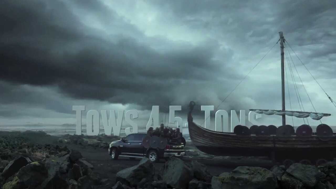 I like surreal and anachronistic humor, so commercials featuring the History Channel’s “Vikings” hawking Dodge Ram trucks are right up my alley.  In one commercial spot airing during the “Vikings” series, the burly warriors are hauling one of their longboats with a truck, the topper being that they are singing a variation of “The Wheels On The Bus” kiddie song classic lustily at the top of their lungs as they do so.