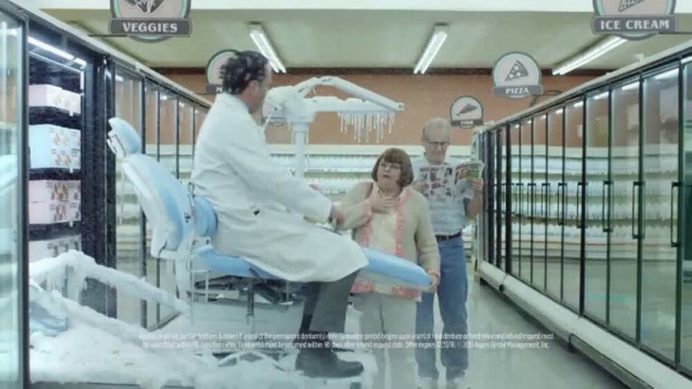 Our Aspen Dental commercial begins with a woman and her self-absorbed hubby prowling the aisles of a generic supermarket while she complains about having to pay for her dental services, whether or not she’s happy with them. “There has to be an easier way,” mutters hubby, his eyes never leaving his paper.