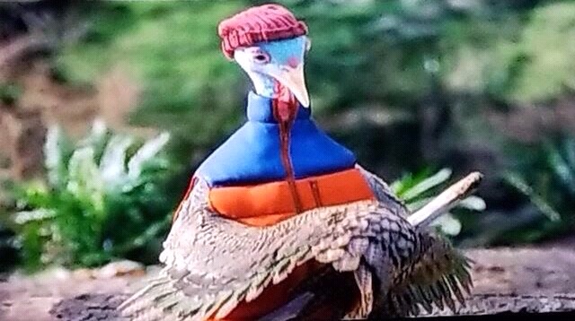 Watching a commercial of the Chantix turkey camping, I wonder if the vest that he’s wearing is goose down filled, and if so whether the wearing of it isn’t some kind of crime against birds in general. Don’t get me wrong, he does look good in it, kind of like an avian Eddie Bauer.  One almost expects to see Elmer Fudd emerge from those woods in the background in his ludicrous hunting outfit, toting a long gun and announcing, “I’m hunting wabbit…but you’ll do!”  Then in my crossover fantasy, previous Chantix spokesman Ray Liotta emerges from those same woods, engaging Elmer in a firefight since one corporate spokesman might reasonably be expected to defend another.  Ray would easily win the fight, having played tough guys in Mafia-inspired films.  Elmer is hardly known as being a marksman…