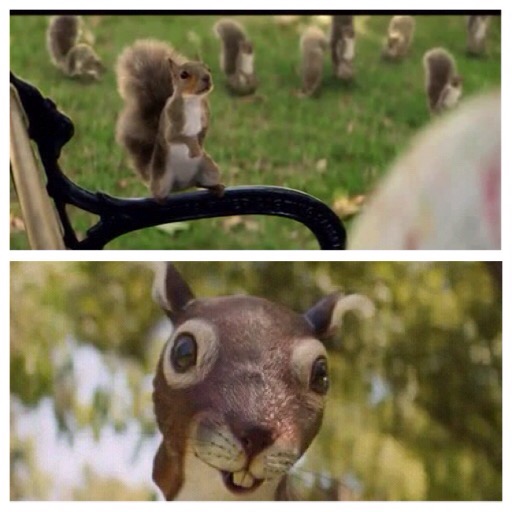 Or conversely, if the woman denied the man-squirrel a morsel, he might take a cue from the 1971 horror movie “Willard,” and tell the assembled squirrels to “tear her up!” Might the man-squirrel’s name be “Ben?”