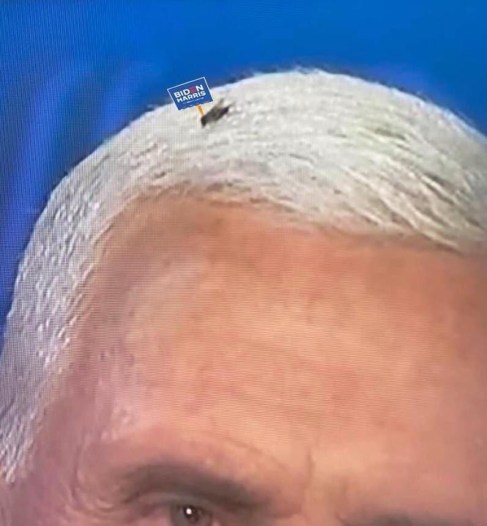 “Oh, to be a fly on the wall!” How many times have you heard that chestnut repeated? Well, a fly was not on the wall, but for several minutes one was on the white hair of Vice President Mike Pence during his debate with Kamala Harris, who seemed not troubled by insects at all. Pence paid the fly no attention, and may not have been aware of it at the time, unlike the debate audience that was largely aware of the fly’s presence, and could practically see or hear nothing else during that time…