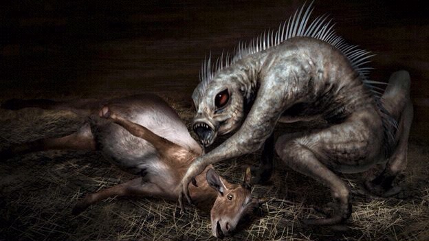 The creature has appearances described differently in Puerto Rico and Texas, with the Puerto Rican variety related to be a bipedal creature standing on its hind legs with lizard-like skin, having a body somewhat like a kangaroo, and standing 4-1/2 to 5 feet tall with but three digits on each hand and foot. The beast as seen in Texas and other American states is essentially a canid in appearance, dog-like but having hairless or almost hairless skin and rather wicked fangs. Both variants of the creature are known for leaving puncture-type wounds on their kills, and usually leaving the flesh of victims intact but drained of blood. Animals killed have included chickens, rabbits, and goats, with the name meaning “goat sucker.”