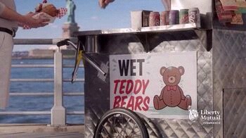 The apparent theme of the commercial is that not everyone wants the same thing, and Liberty Mutual allows you to customize to get and pay for just what you want. It’s hard to imagine any demand, however, for a wet teddy bear, which seems a perversion of their nature. To each their own, however, while this concept certainly isn’t one for me. This wet teddy bear stand seems headed for financial ruin, even if it is what its owner wants. Perhaps a mobile psychotherapist might be more in order…