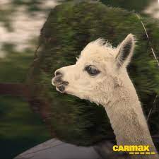 Alpacas are cute and appealing, and as we learn from a recent CarMax commercial, apparently quite clever! We see an alpaca on a farm watching the owner return in his pickup truck, his faithful dog hanging out of the side window. Digging this scene, the alpaca apparently feels that he would like to ride shotgun, too…