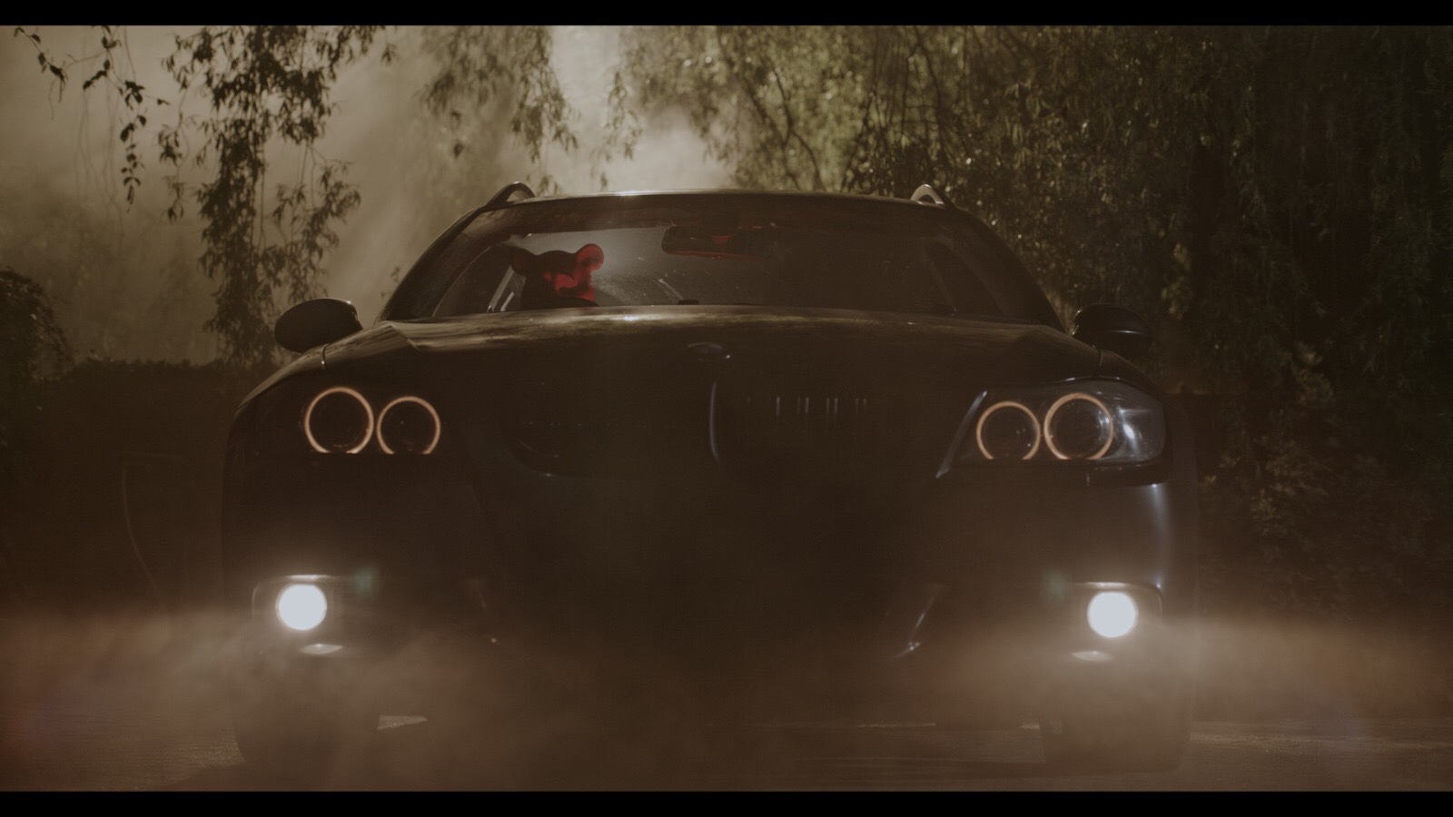 In a scene which to me seems reminiscent of Steven King’s Christine, Pooh-bear is driving an ominous-looking vehicle. Just don’t bother looking for Eeyore the donkey, although you’ll see his tombstone. The boys have already killed and eaten him…