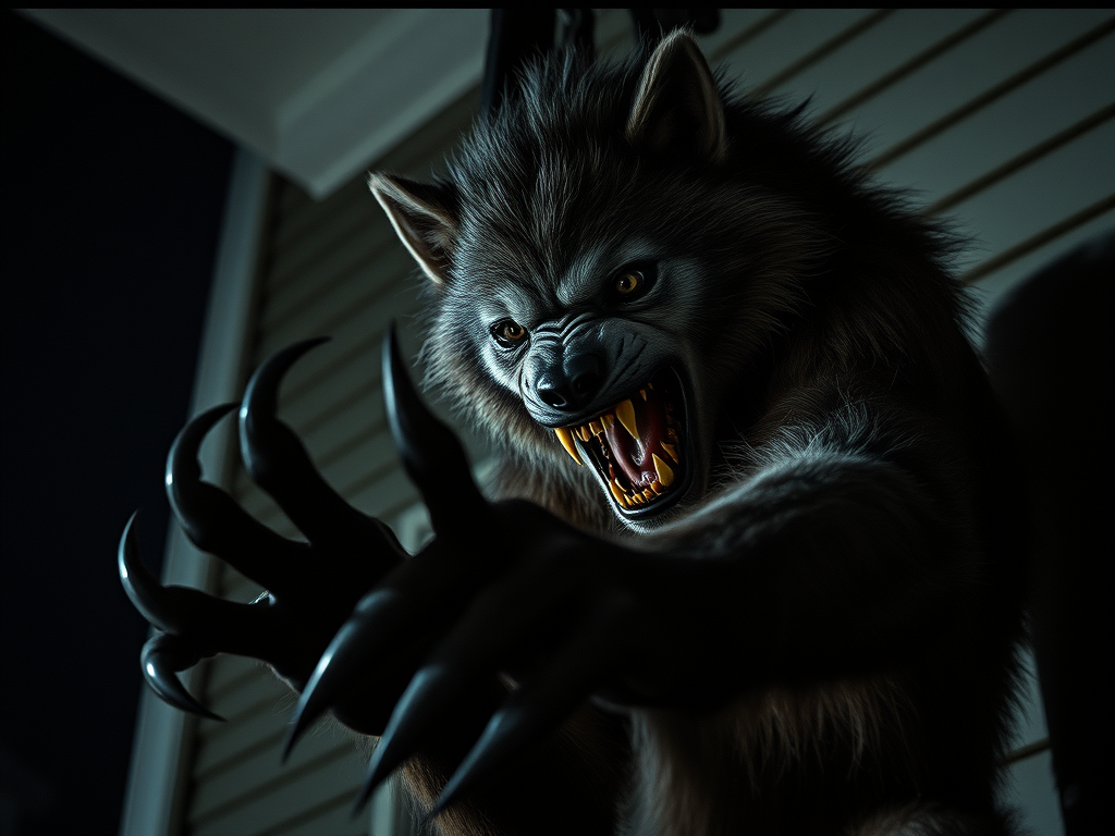 Lastly in Iola, Kansas a young woman encountered what was described as a massive, terrifying dog. Walking with a boyfriend in 1977, they encountered an area of flattened grass 14′ in diameter that was apparently where something had bedded. They actually urinated on the area, apparently hoping by doing so to drive away whatever had bedded there. The opposite effect seemed to come to pass as the woman at her home at night heard a deep, guttural growl, calling her boyfriend to report “I think I’m being stalked by a werewolf!” Fearful, she went then to stay with her boyfriend, who locked eyes with the creature that had followed, and began tearing siding off the house. It was described as being a black mass with a black muzzle and yellow eyes. A pit bull outside then jumped the creature, and the noise of the resultant fracas prompted a neighbor to call police. Investigating, the body of the pit bull (“or what was left of it”) was found outside…