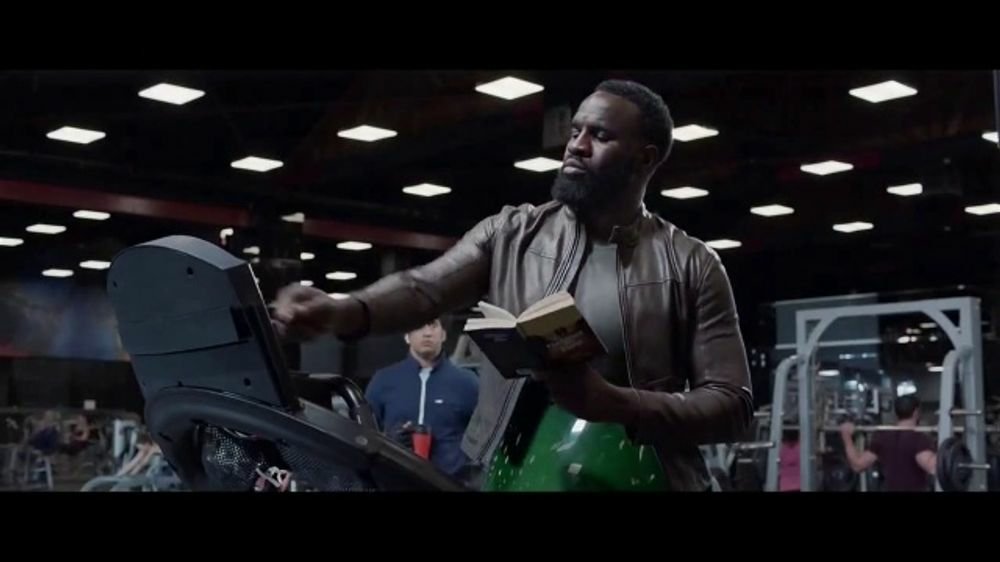 There are advantages to being a cybernetic organism. In addition to being extremely cool, it’s awfully easy to exercise when your lower body machine components are those of a motorcycle; just roll onto a treadmill, and you’re off to the races! You can even multi-task while you’re on a roll by reading a book. That’s right, our Progressive motaur isn’t just a pretty face getting his laps in, he’s improving his mind! We can all learn from this…