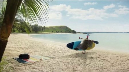 Now there was foreshadowing for this commercial in the last one when we saw the turkey getting out his flip-flops, knocking them together, arranging seashells, and looking at beach scenes on his phone. We shoulda seen this coming, folks. And as I’ve said before, this turkey has a better life than I do. He even returns from his beach visit in the coolest little convertible vehicle that suits him perfectly!