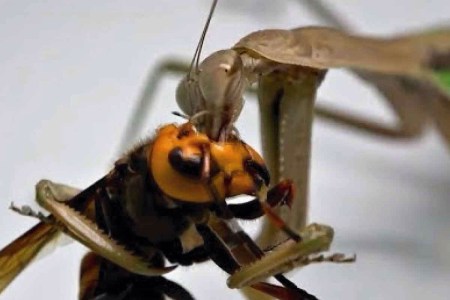 Just as it appeared that we had no defense against the nasty and invasive murder hornets, a champion appears who can beat them at their own game…the praying mantis! We haven’t seen a battle this epic since Species 8472 handily beat The Borg in Star Trek. Come to think of it, Species 8472 somewhat resemble praying mantids, who do look rather alien with their triangular heads and all. It’s a good thing that they don’t grow to six feet in size, or they might want a piece of our action…