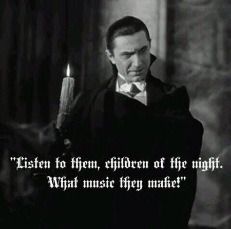 We can’t all be vampires, much less Dracula…some of us are just children of the night, and I can live with that.  It’s not that I dislike vampires, it’s just that I’m much more of a werewolf guy! Besides, we children of the night have a hell of a band, being know for our music.  Alright, now we’re just a garage band, but watch for our breakout album…