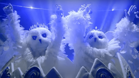 The final pairing was even more surreal, with a contestant Tree dressed as a Xmas Tree performing High Hopes and defeating Ice Cream who sang Old Town Road. Ice Cream was unmasked as Tyler “Ninja” Bleving following a second chance “smackdown” defeat by Ladybug, who appropriately won singing Hit Me With Your Best Shot.